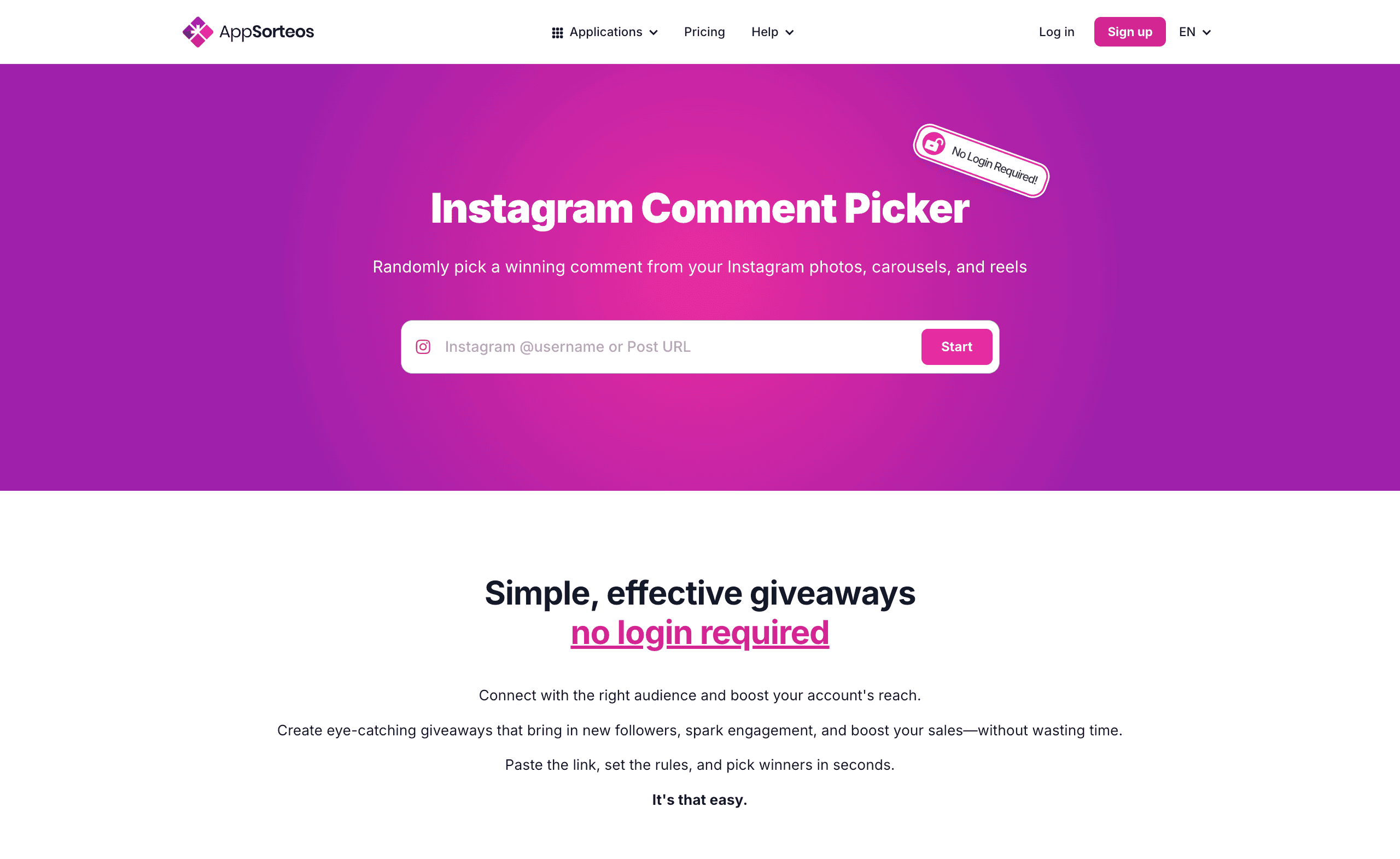 Sortealo is an Instagram focused giveaway tool that operates with a simplicity first approach and does not require user registration.