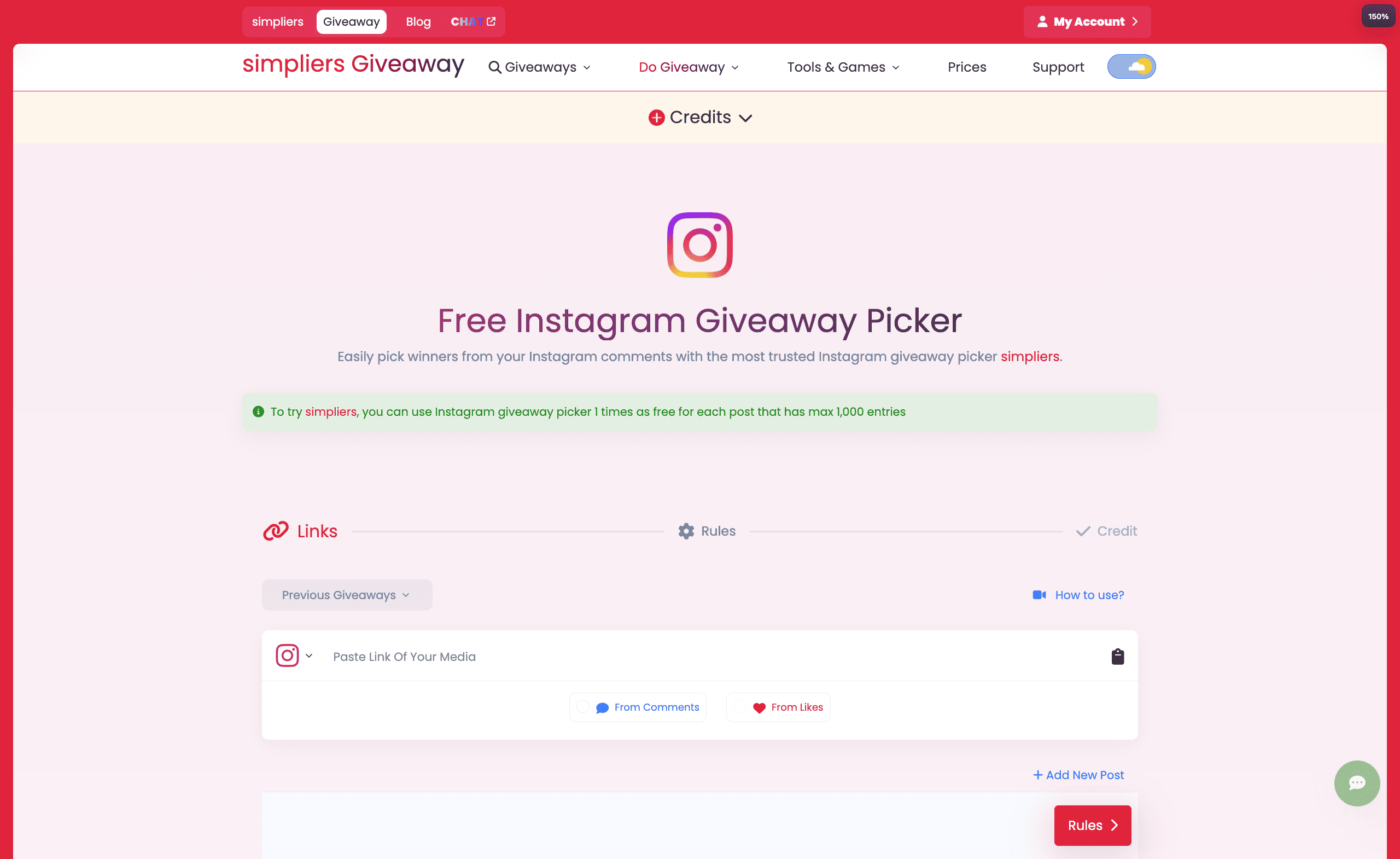 Simpliers is one of the most preferred Instagram giveaway tools worldwide thanks to its transparency and trust focused structure Its real time winner selection visualization clearly sets it apart from competitors.