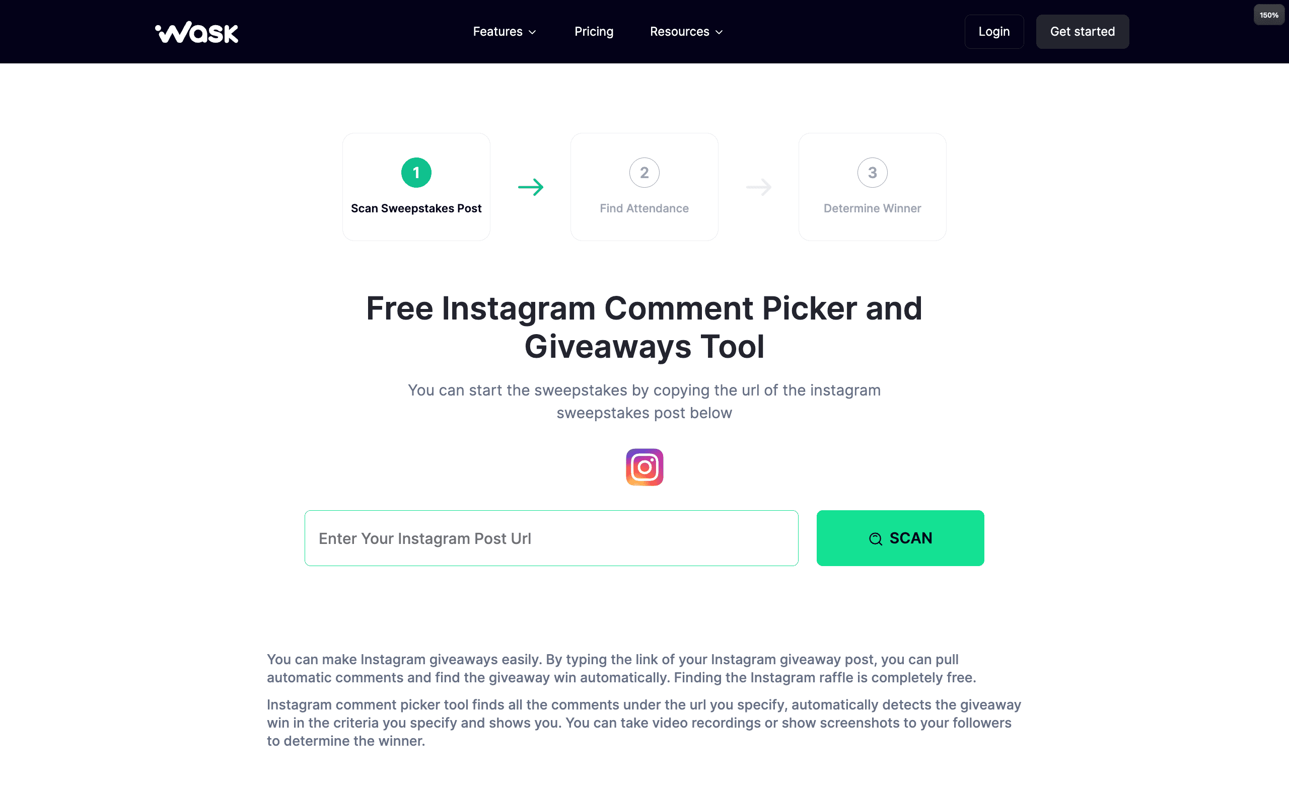 WASK is primarily a digital advertising management platform but also offers an Instagram giveaway tool.