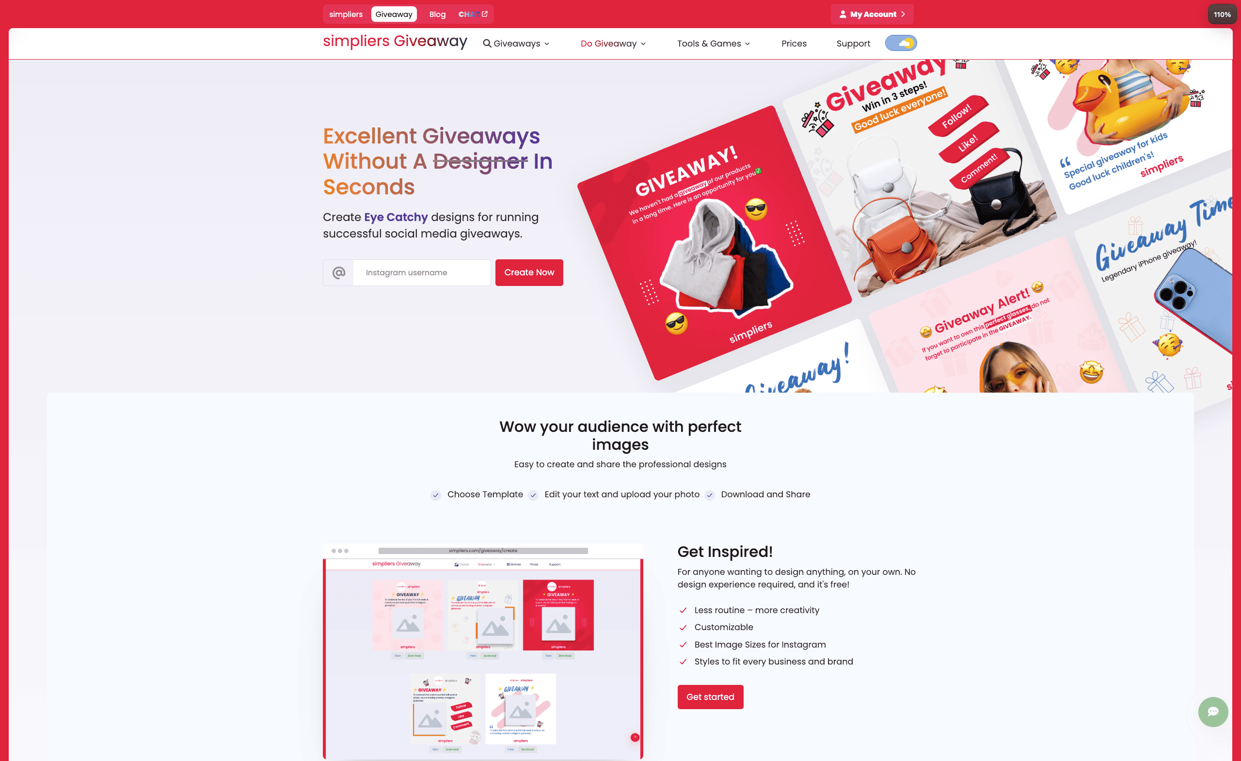 After choosing the right prize, share it publicly on your Instagram profile with a strong visual. You can use AI tools, ready-made Canva giveaway templates, or Simpliers’ giveaway image generator to create professional visuals quickly.
